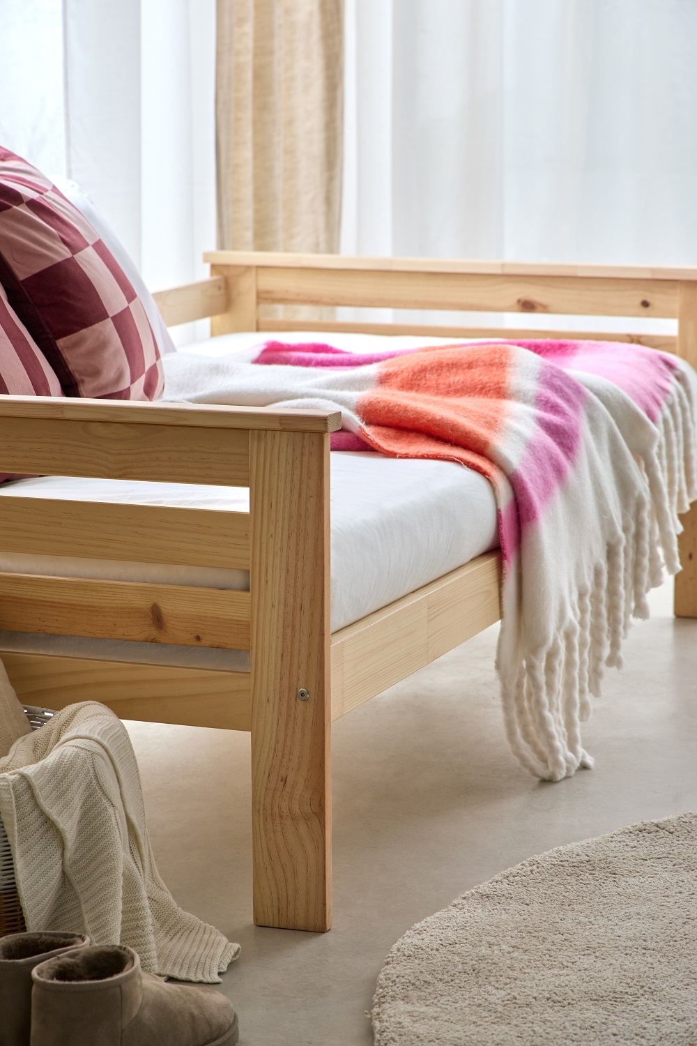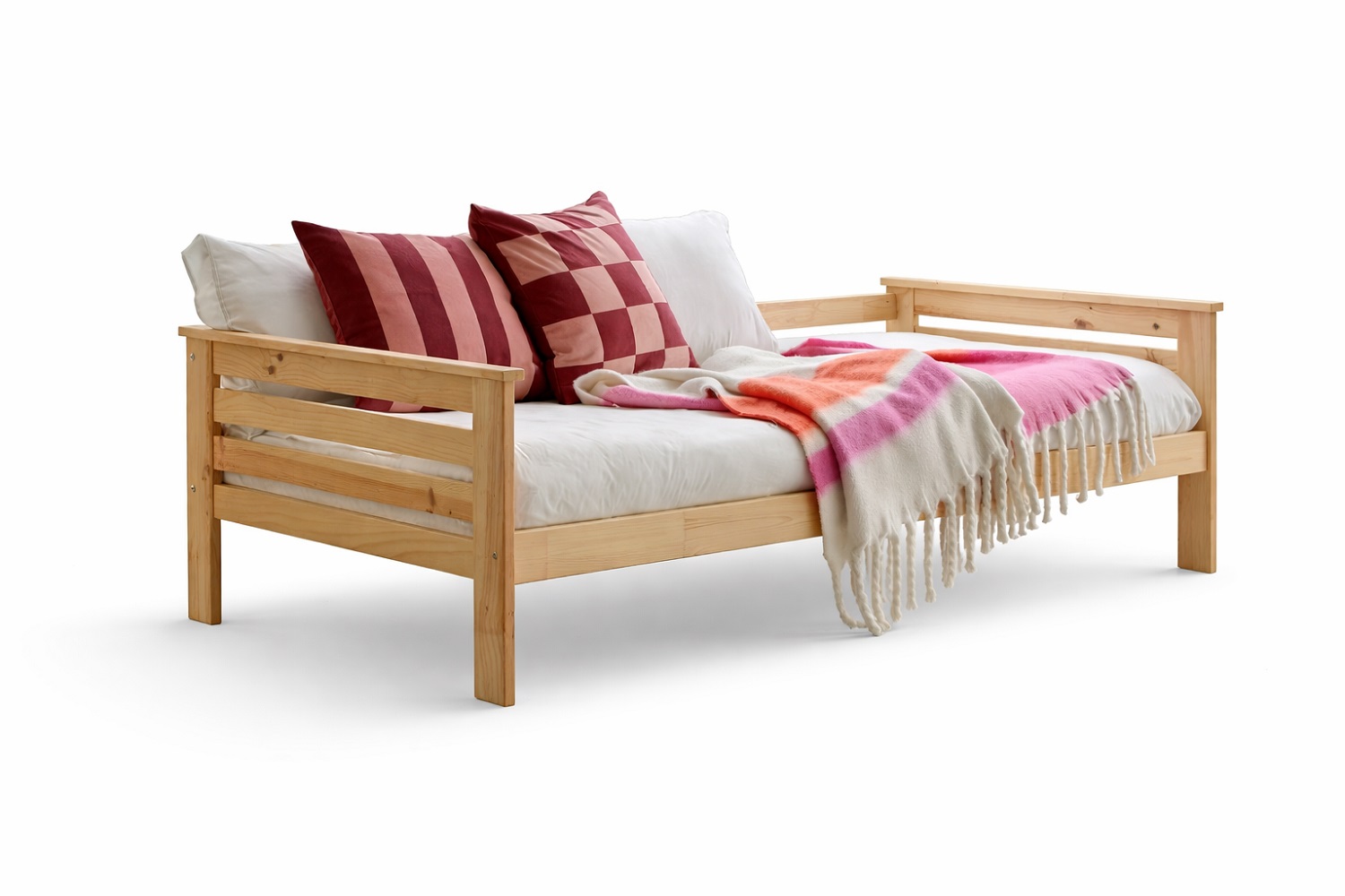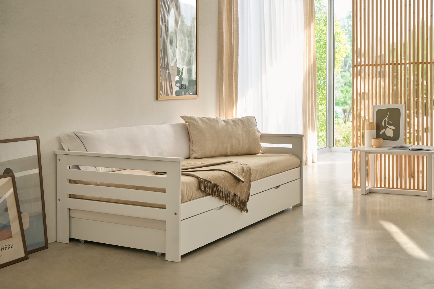 Cama individual para colchón de 90×190 cm. Estructura sólida y diseño multifuncional que le permiten ser utilizada tanto como cama individual como diván  adaptándose a diferentes espacios y funcionalidades.
