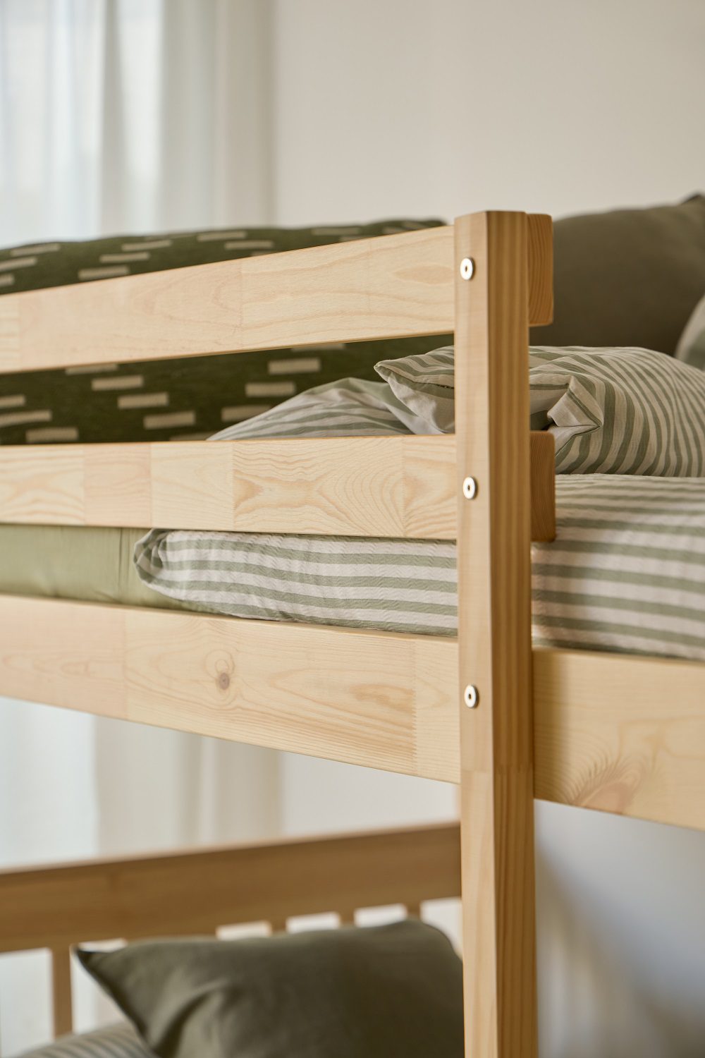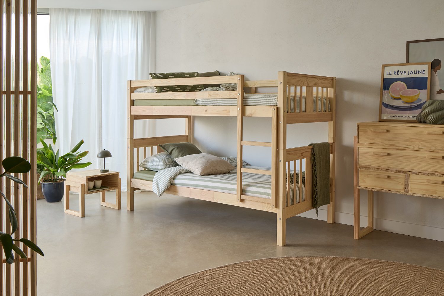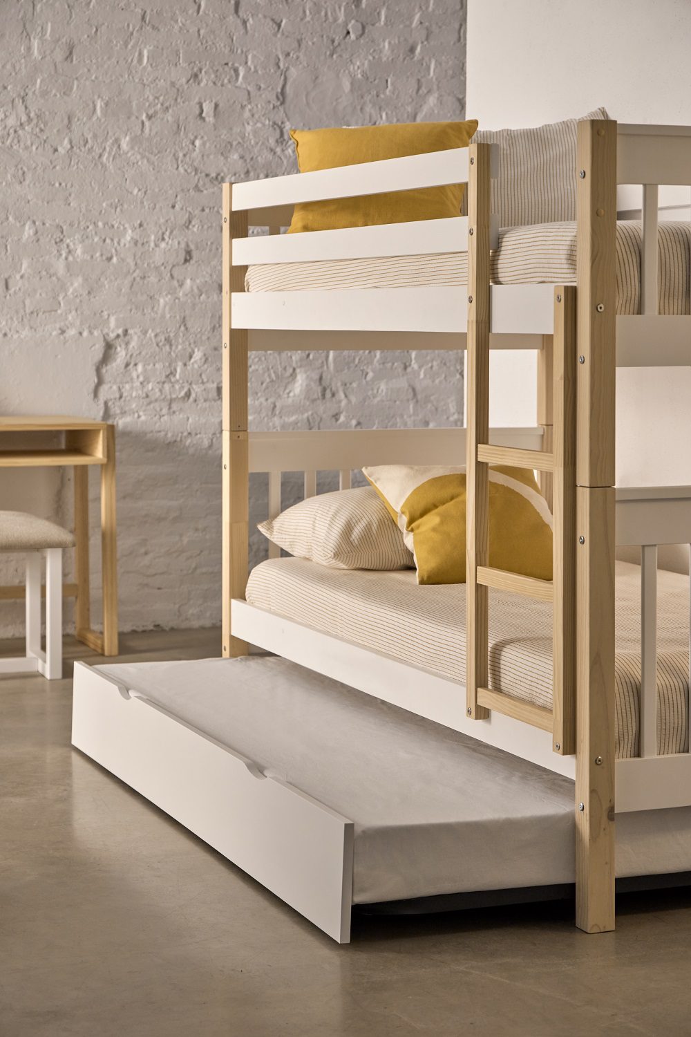 Acabada con barnices libres de tóxicos, seguros para el hogar y especialmente adecuados para espacios infantiles y juveniles, manteniendo un diseño natural que encaja con el resto de muebles de la colección.